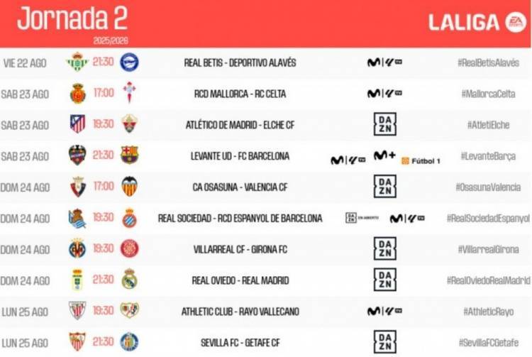 直播吧7月10日讯 今天,西甲联盟在官网公布了西甲第二轮的比赛对阵,皇马和巴萨均在客场对阵本赛季的升班马球队。